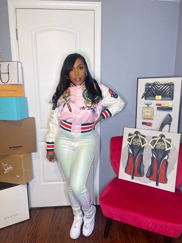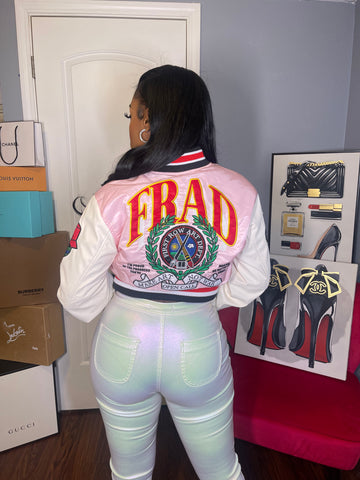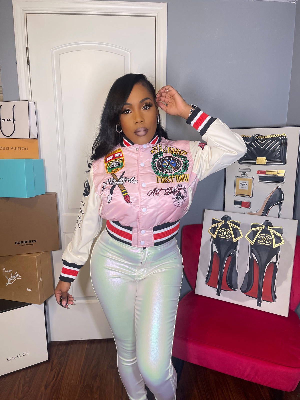 women’s crop varsity jacket  true to size  model is wearing a size small