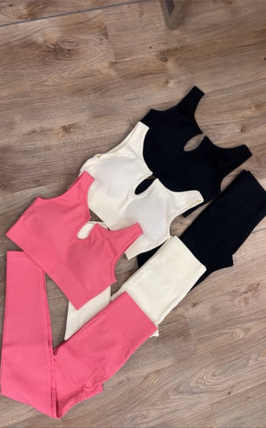 Two piece high waist active bottoms and crop top  fits true to size does stretch really good...