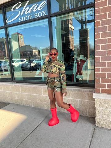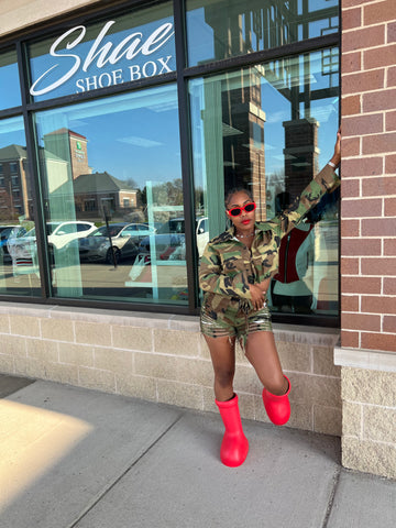 Army fatigue crop top jacket True to size  shae is wearing a size small