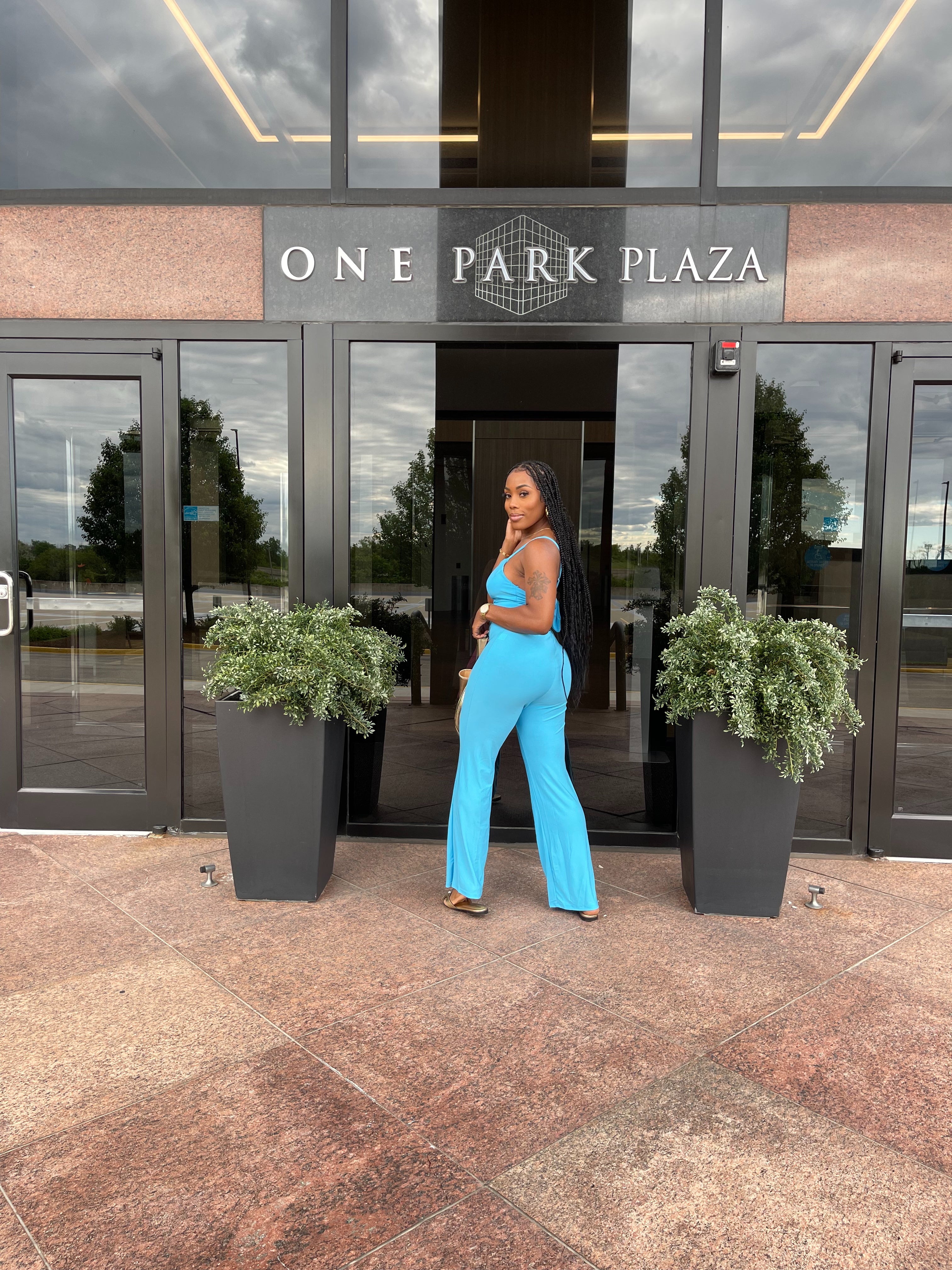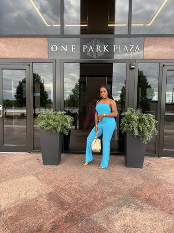 Back tied cutout jumpsuit fits true to size good stretch  model wearing a size small